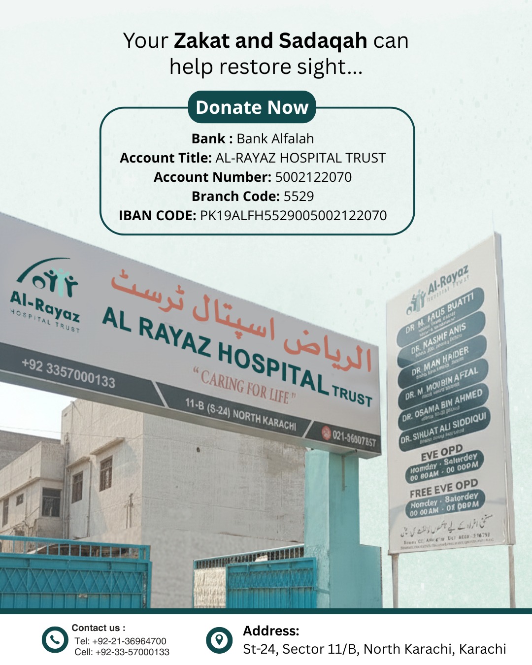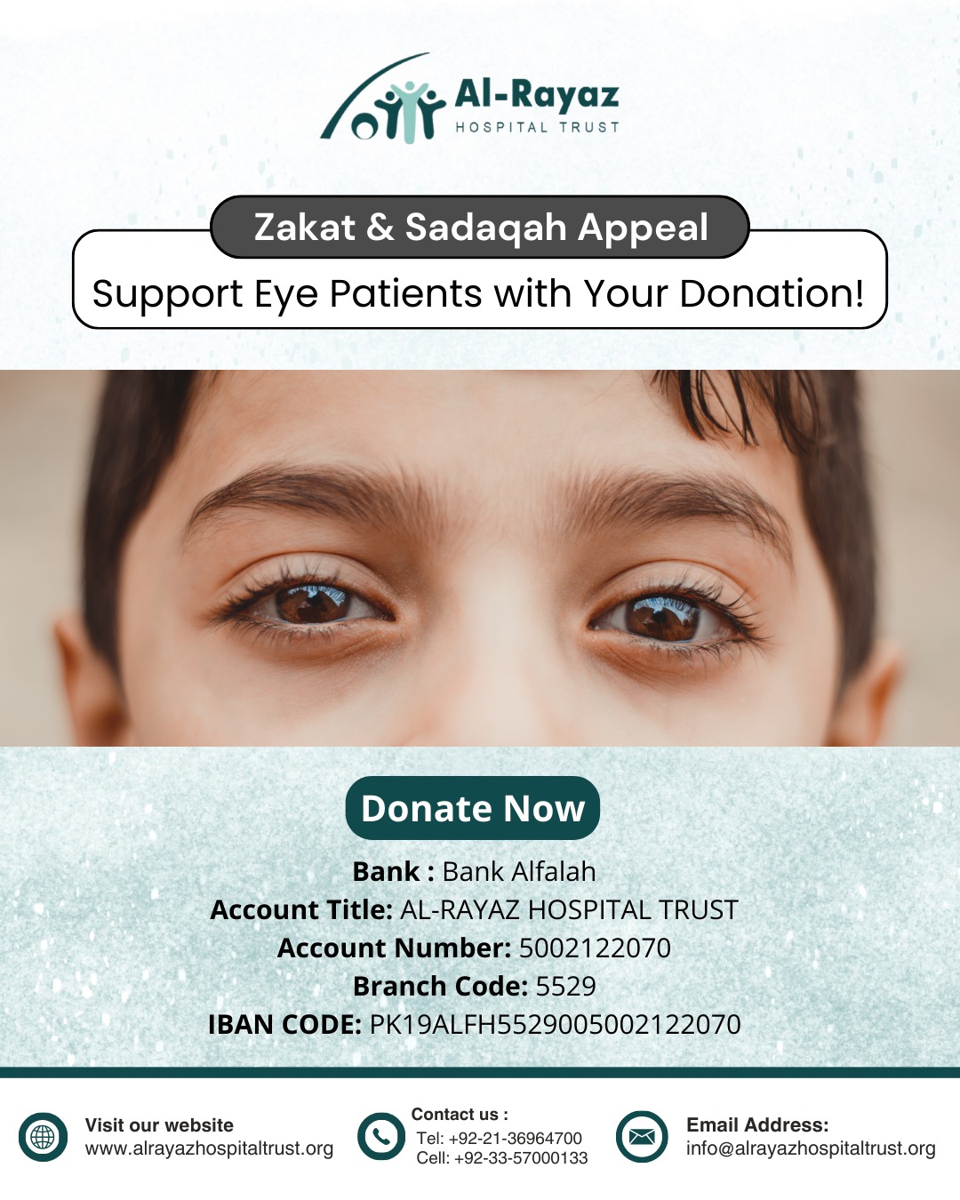 At Al Rayaz Hospital Trust, we believe that every individual deserves the gift of sight. For many underprivileged families, access to quality eye care remains out of reach due to financial constraints. This is where your Zakat and Sadaqah can